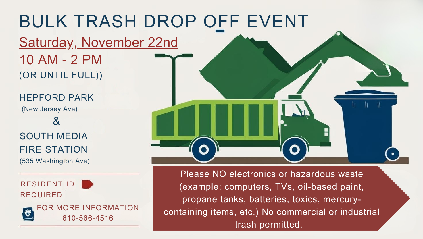 Bulk Trash Event Saturday, November 22nd from 10am-2pm at 2 locations